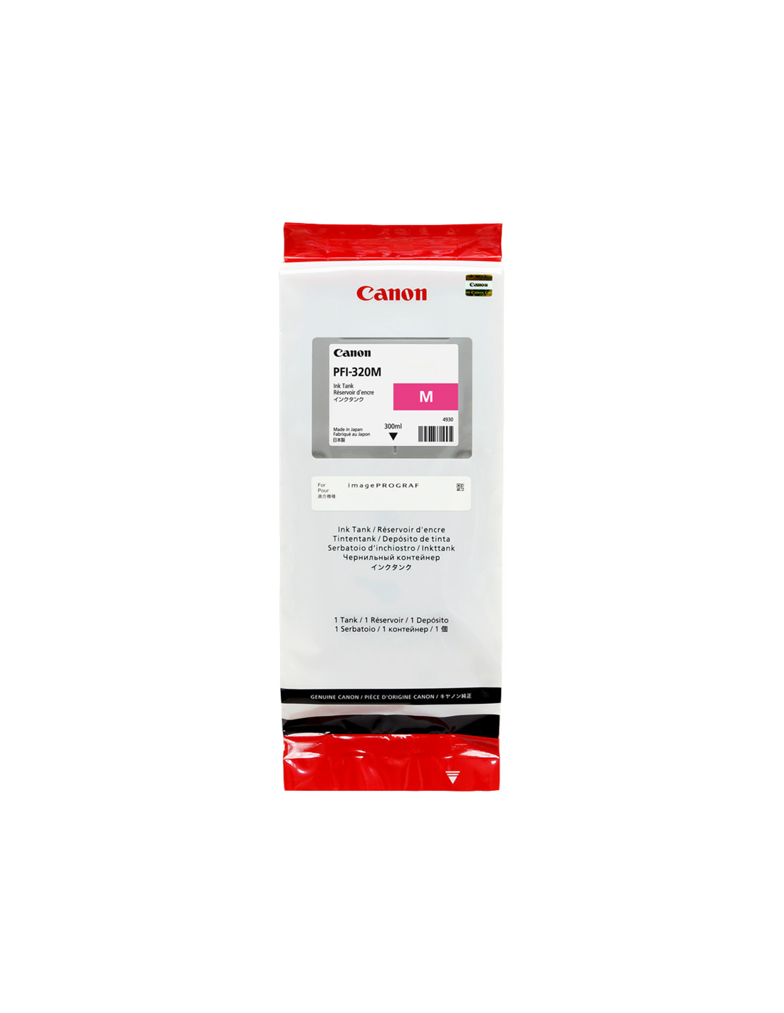 La cartouche d'encre Canon référence PFI-320m de couleur Magenta, est donnée par le constructeur pour une capacité de 300 ml. Cette cartouche est compatible avec les imprimantes Canon TM-200, TM-205, TM-300, TM-305