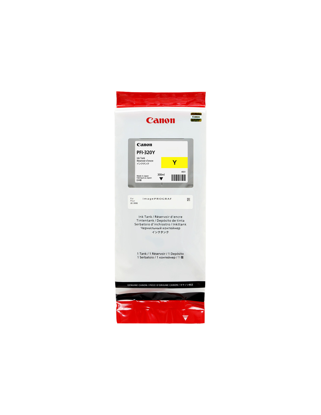 La cartouche d'encre Canon référence PFI-320y de couleur Jaune, est donnée par le constructeur pour une capacité de 300 ml. Cette cartouche est compatible avec les imprimantes Canon TM-200, TM-205, TM-300, TM-305