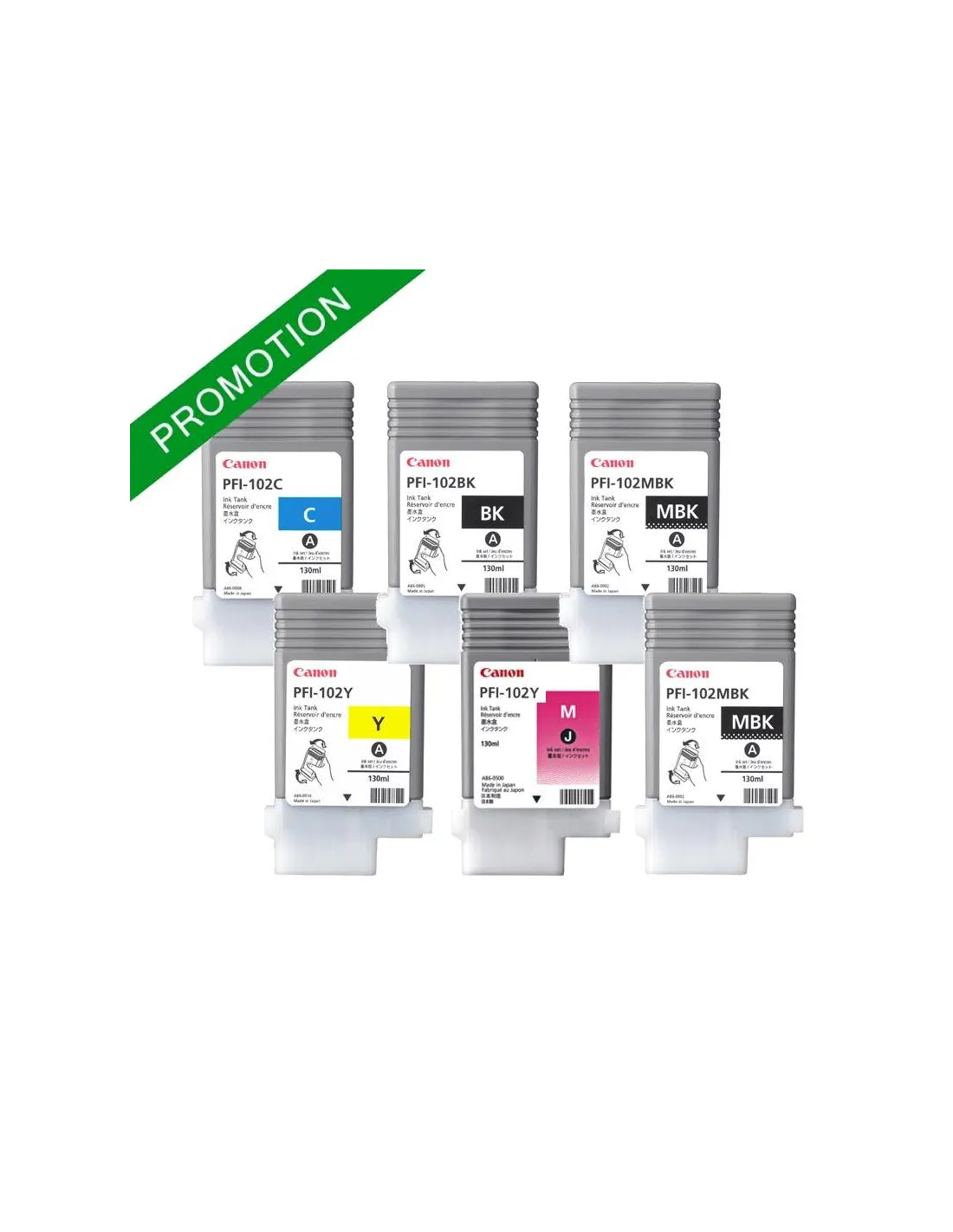 La capacité du réservoir est de 130ml. PACK PFI-102 est compatible avec les traceurs Canon iPF500 / Canon iPF510 / Canon iPF600 / Canon iPF610 / Canon iPF700 / Canon iPF710/ Canon iPF720