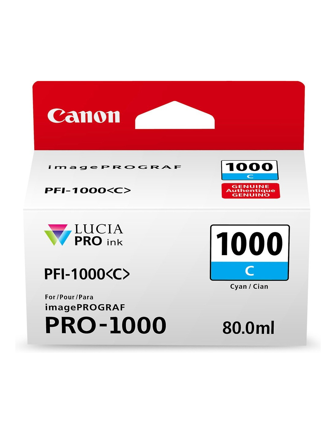 La capacité du réservoir de couleur Cyan est de 80 ml. La cartouche d'encre PFI-1000 C est compatible avec les traceurs CANON IPF PRO-1000