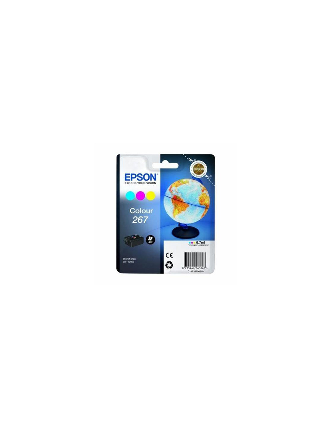 Cartouche couleur T267040 : contient environ 6,7 ml d’encre tri‑couleur (cyan, magenta, jaune), permettant jusqu’à ~200 pages selon couverture. Son code EAN est 8715946541846.