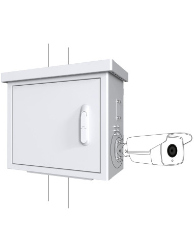 Ce cabinet offre plusieurs caractéristiques qui en font le choix parfait pour vos besoins de surveillance. Avec quatre points d'installation pour caméras, dont un ajustable, il vous permet de configurer votre système de surveillance en fonction de vos préférences.