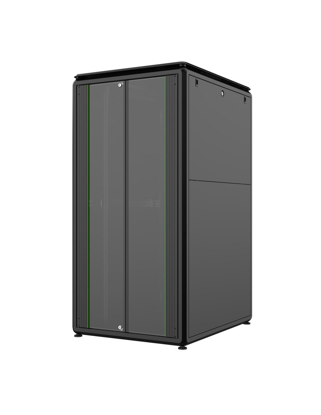 Avec des supports latéraux renforcés et des points de support en cube oméga, l’armoire garantit une résistance maximale. Les panneaux latéraux sont facilement amovibles, offrant un accès rapide lors de l'installation ou de l'entretien. Les modèles de 42U et 46U disposent de panneaux verticaux fendus qui facilitent encore davantage cette opération.