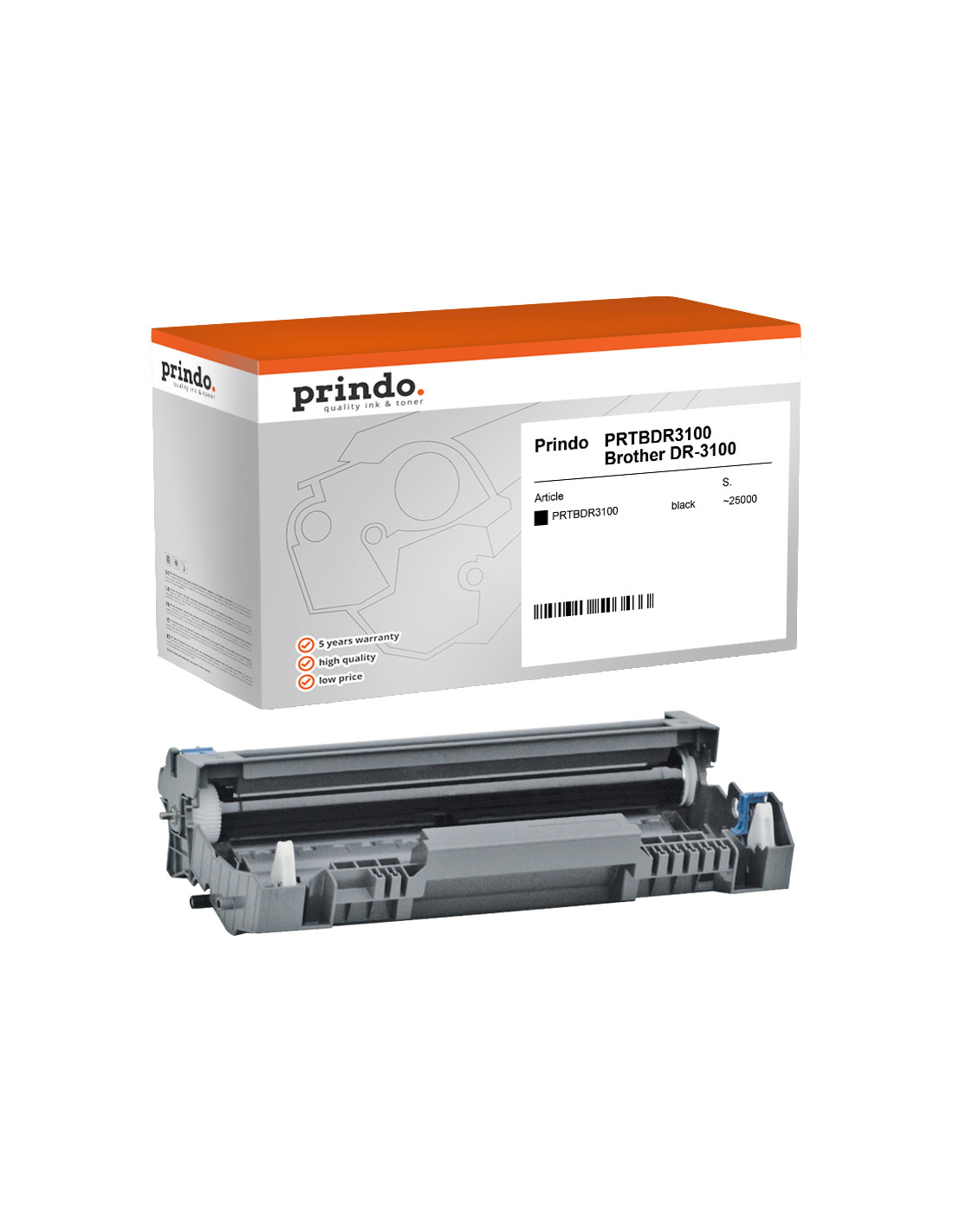 Découvrez le tambour d'image noir Prindo, une alternative fiable et économique au tambour original Brother DR-3100. Ce produit Prindo Classic est conçu pour répondre aux besoins d'impression de votre entreprise tout en offrant une qualité d'impression exceptionnelle. Avec un rendement impressionnant d'environ 25 000 pages, ce tambour est idéal pour les utilisateurs réguliers et les entreprises à fort volume d'impression.