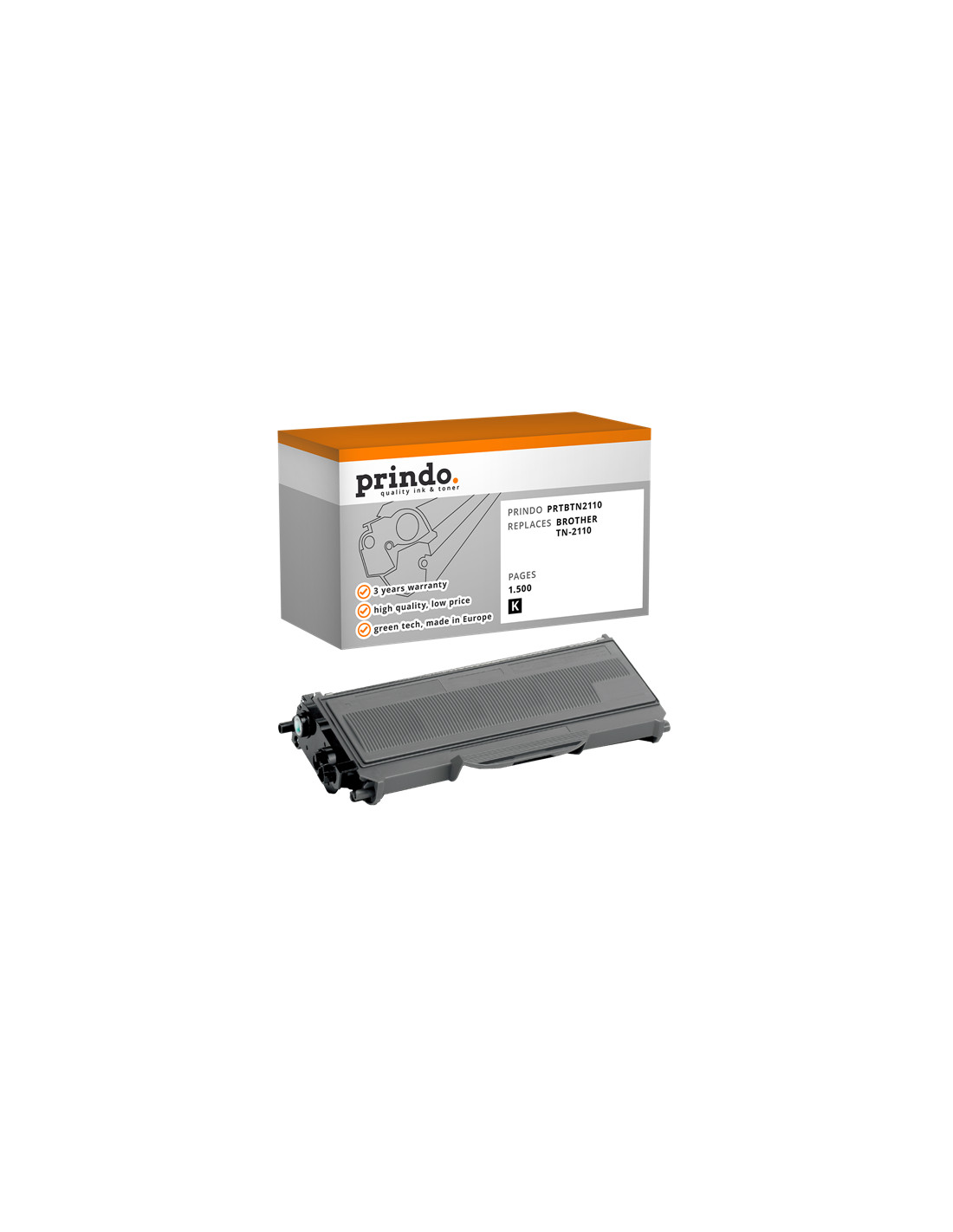 Le Toner BROTHER Compatible référence TN-2110 de couleur Noir, est donné par le constructeur pour une capacité de 1 500 pages