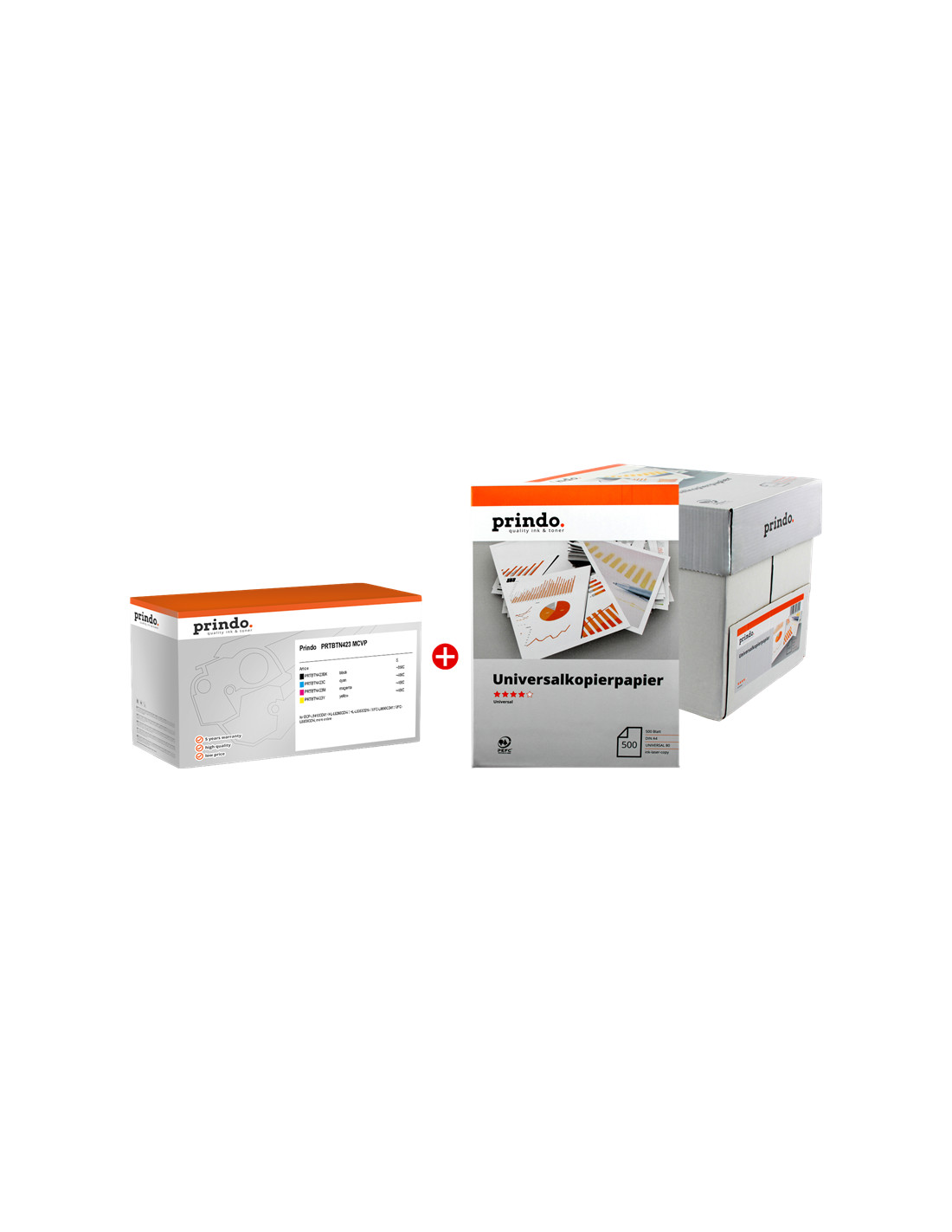 Découvrez le toner compatible TN423 MCVP de Prindo, spécialement conçu pour les imprimantes Brother. Ce pack de toners Prindo Classic comprend quatre cartouches : Noir, Cyan, Magenta et Jaune, vous offrant une solution complète pour vos besoins d'impression. À la fois performantes et économiques, ces cartouches vous permettent d'imprimer des documents de haute qualité sans compromettre votre budget.
