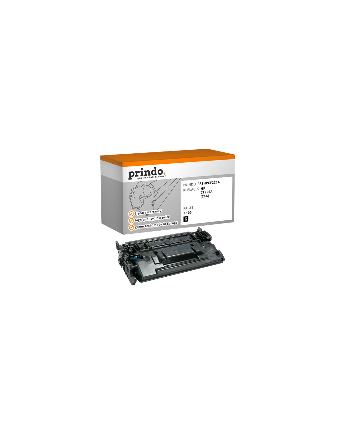 Le Toner HP Compatible référence CF226A de couleur Noir, est donné par le constructeur pour une capacité de 3 100 pages