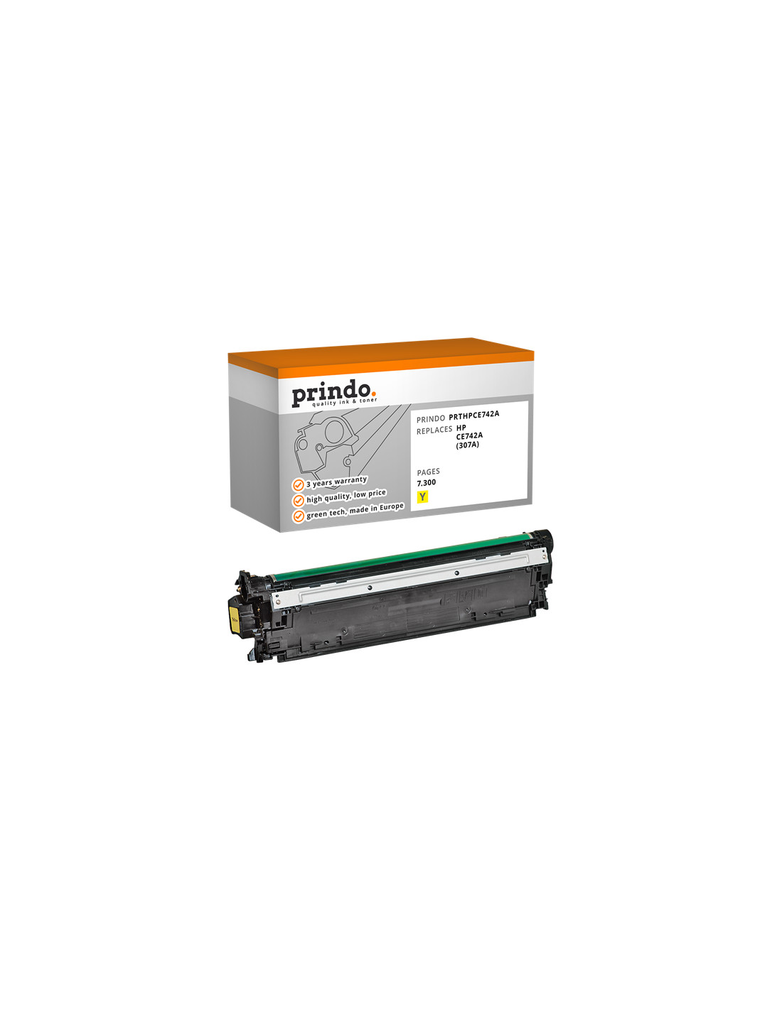Le Toner HP Compatible référence CE742A de couleur Jaune, est donné par le constructeur pour une capacité de 7 300 pages