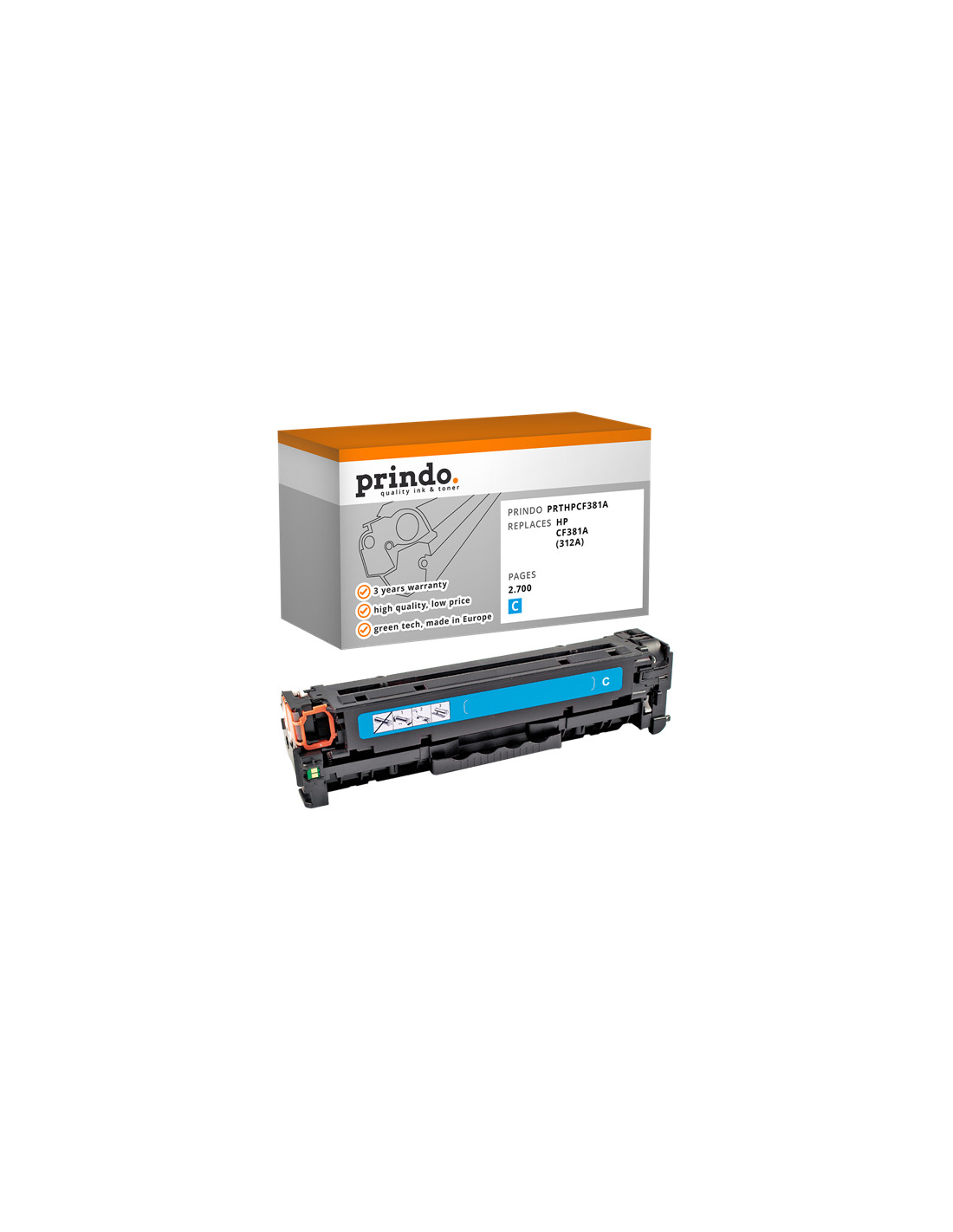 Le Toner HP Compatible référence CF381A de couleur Cyan, est donné par le constructeur pour une capacité de 2 700 pages