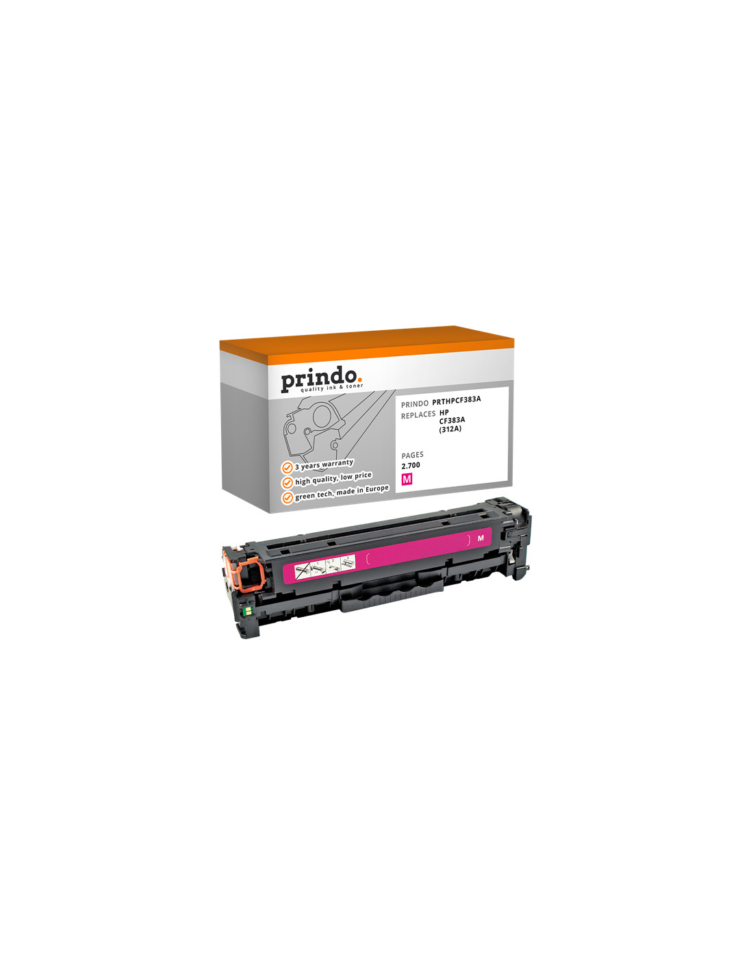 Le Toner HP Compatible référence CF383A de couleur Magenta, est donné par le constructeur pour une capacité de 2 700 pages