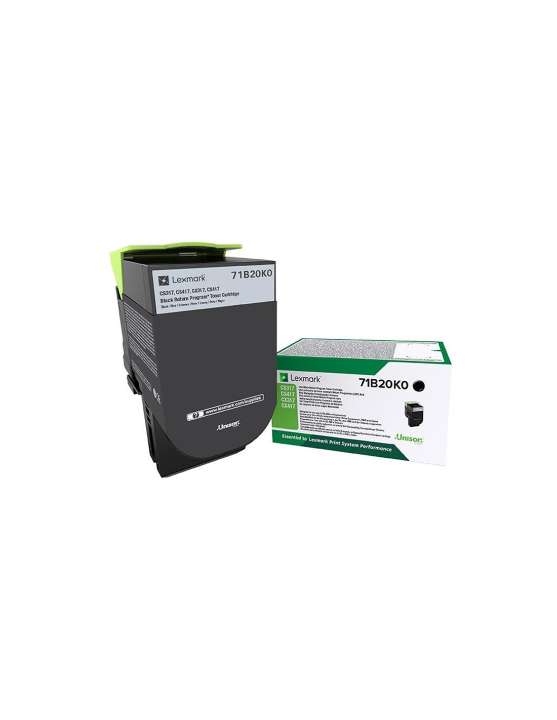Toner Lexmark original Noir 3000 pages, référence 71B20K0 pour imprimante CS317, CS417, CS517, CX317, CX417